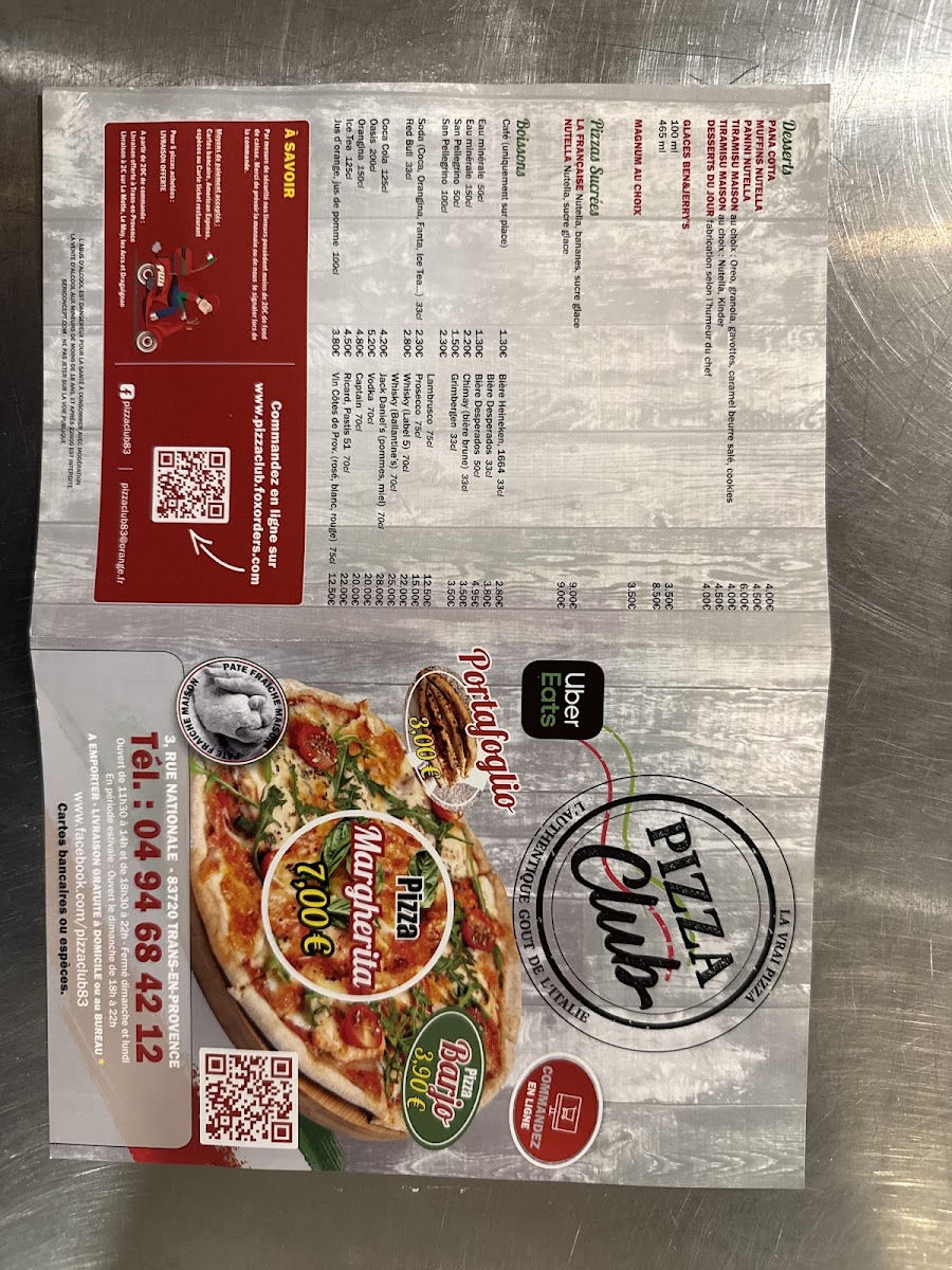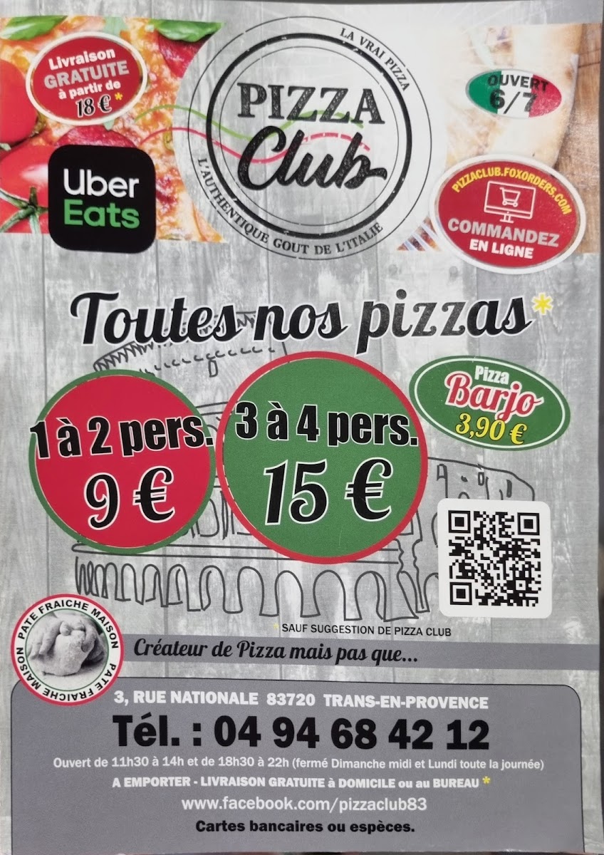 Situated in the heart of Trans-en-Provence, Pizza Club offers an exceptional pizza experience defined by fresh ingredients, generous portions, and authentic Italian flair. The menu boasts a wide variety of pizzas, each crafted with a perfectly handmade dough prepared right before your eyes, ensuring a delightful texture with every bite. Highlights include the burrata pizza, praised for its rich creaminess and balanced with fresh salad and balsamic cream, creating a harmonious blend of flavors. While some have noted the Vincenzo pizza as saltier due to its salmon topping, the overall quality remains impressive. Customers consistently rave about the freshness and intensity of flavors, the affordable prices, and the warm, inviting atmosphere of the restaurant. Whether you choose delivery, takeaway, or dining in, Pizza Club guarantees a genuine and satisfying taste journey that guarantees to delight pizza lovers seeking generous garnishes and authentic Italian tradition.